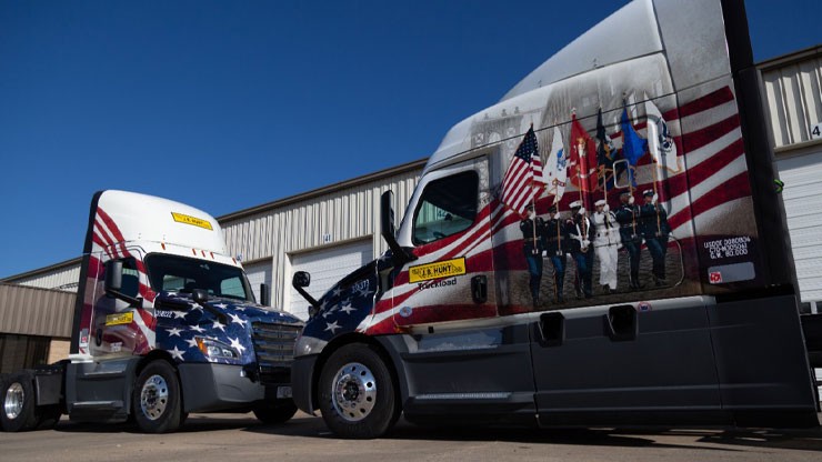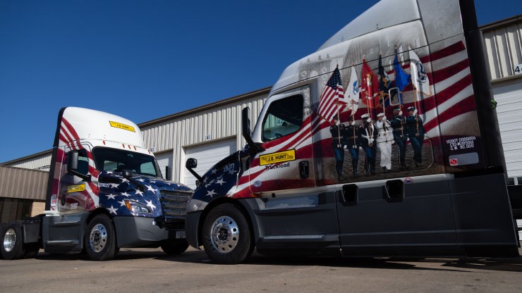More than 2,000 J.B. Hunt employees will join thousands of volunteers on December 15 for Wreaths Across America Day ceremonies throughout the country, placing wreaths on the headstones of veterans at participating cemeteries. Forty-two J.B. Hunt drivers nominated and selected by company leadership will transport the wreaths from Harrington, Maine, to their final destination using 16 new military-themed semi tractors. They will also take part in local memorial ceremonies as they hand off truck keys to the next driver along the convoy routes.